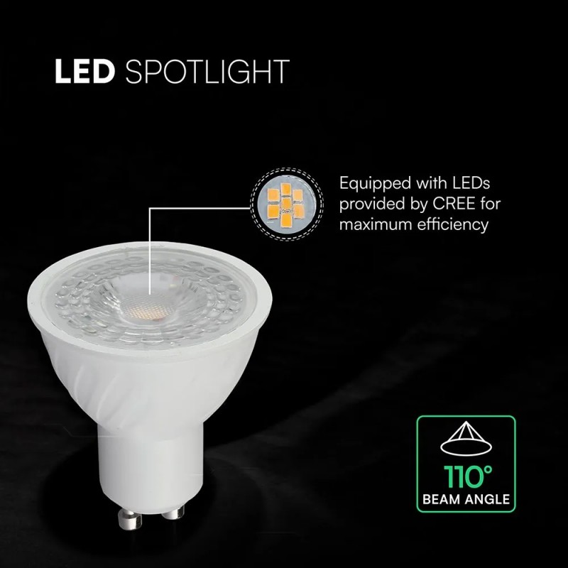 Bec spot led CREE 6W GU10 disponibile cu lumina calda 3000K, lumina neutra 4000K si lumina alb rece 6500K.