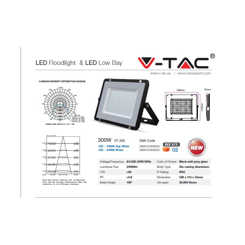 Proiectorul cu led Samsung 300W este produs de V-TAC Europe si face parte din gama V-TAC-PRO cu 5 ani garantie.