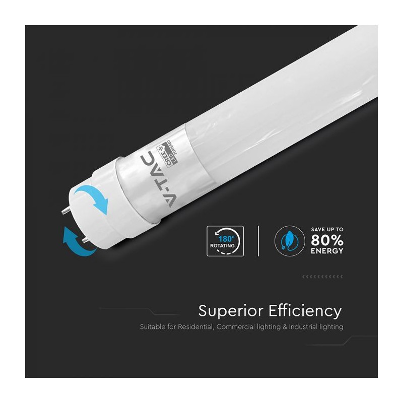 Fiecare tub led CREE 9W cu capete rotative se livreaza in cutie separata cu starter led si schema de montaj. Alimentarea se face la un singur capat.
